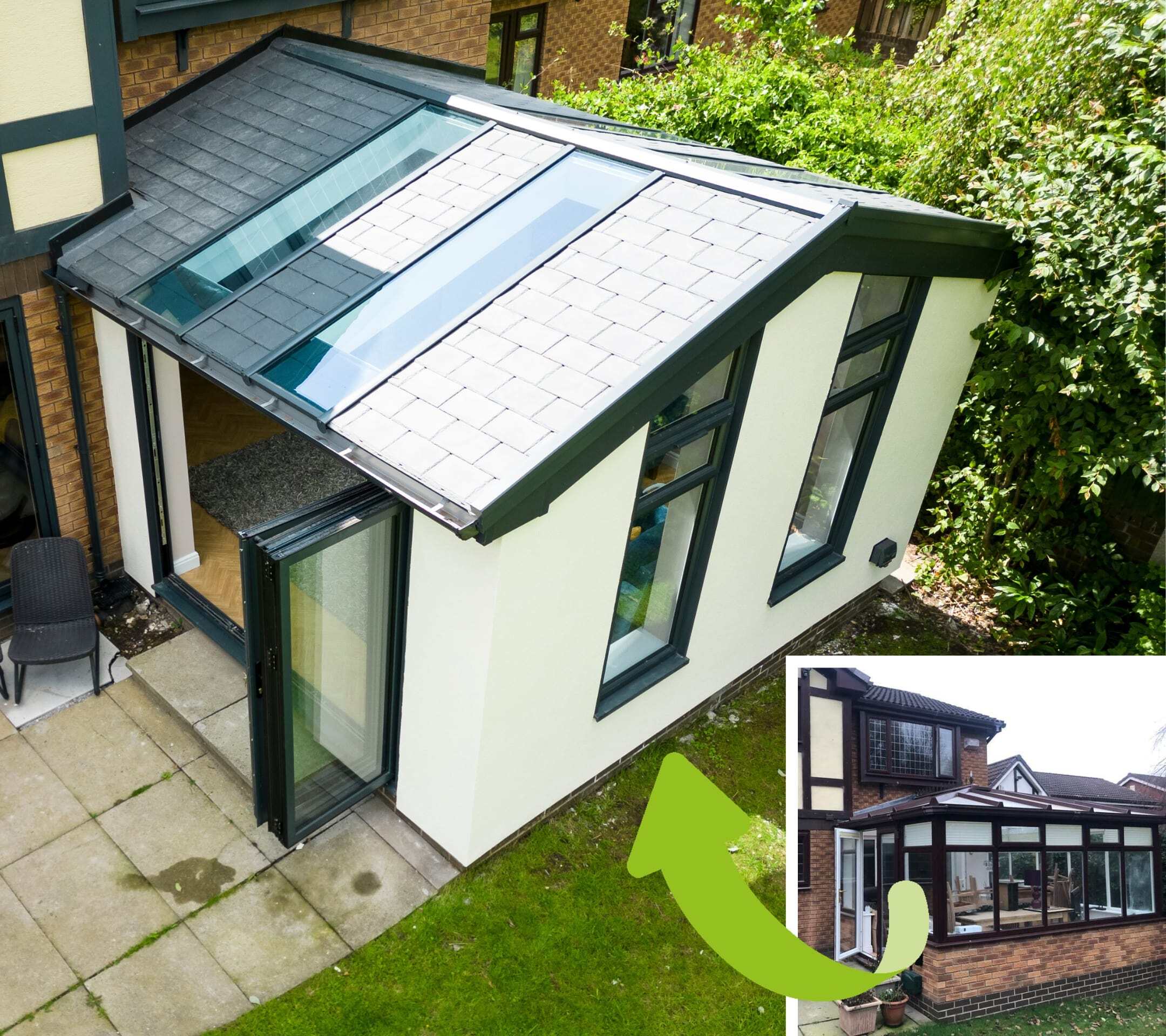 Replace your old conservatory with a new, energy efficient extension. Our quick and seamless conversions create comfortable living spaces you can use all year round – without the need for new foundations!